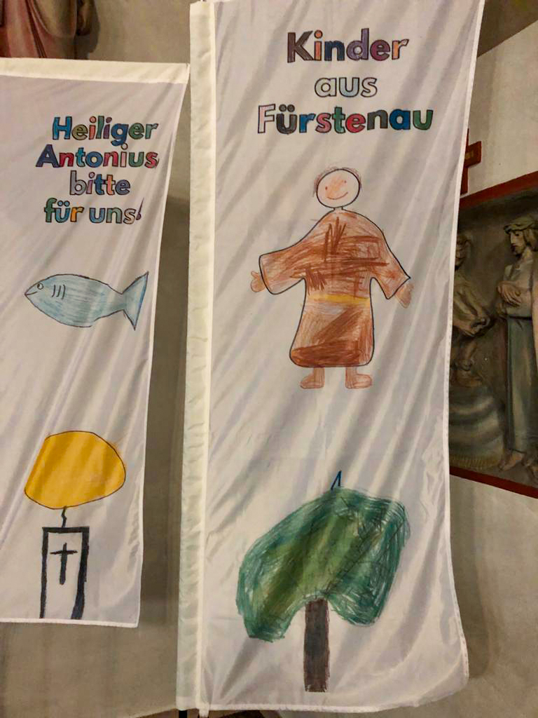 Der Text „Heiliger Antonius, bitte für uns !“ ist auf einer Fahne zu lesen. Möge dieser Ruf der Fürstenauer Kinder niemals verhallen, denn es ist eine Bitte mit Zukunftscharakter. Sie sind die Kirche von morgen.